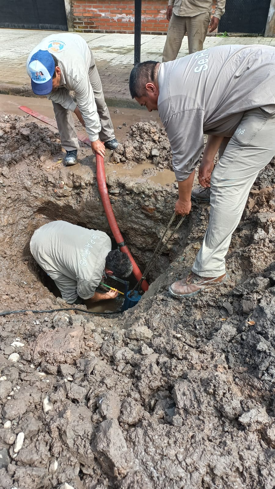 También se llevaron adelante intervenciones en conexiones domiciliarias en puntos como Barrio Aeropuerto, Cevil Pozo y Santa Rosa, donde se ejecutaron tareas de reparación, desobstrucción y mejoras en sectores ubicados al final de red, permitiendo recuperar condiciones normales del servicio.